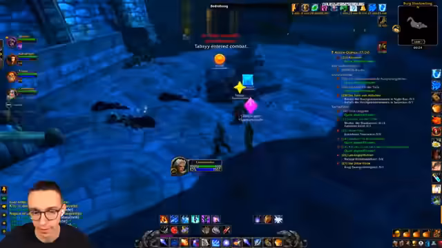 11:51:25Die Gruppe startet eine anspruchsvolle Elite-Quest, die ernsthaftere Teamarbeit erfordert als bisherige Aktivitäten. Der Streamer vergleicht die Konzentration, die hier nötig ist, mit dem eher lockeren Durchspielen der Todesmine. Er ist sich unsicher, wie herausfordernd der Kampf auf demselben Level sein wird und äußert Bedenken, dass jemand in der Gruppe sterben könnte. Der Fokus liegt auf koordiniertem Pullen und Ressourcenmanagement, insbesondere bei Manamangel.