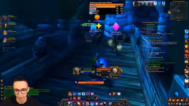 10:25:33Nachdem ein wertvoller Gegenstand gedroppt wurde, diskutiert die Gruppe über dessen Verteilung. Kurz darauf beginnt ein anspruchsvoller Bosskampf in einer Instanz. Der Streamer analysiert die Mechaniken des Bosses, die unter anderem Line-of-Sight-Manöver, das Unterbrechen von Zaubern durch Counterspell und die Gefahr von Stuns und Mind Control umfassen. Die Kommunikation während des Kampfes ist zentral, da jeder Spieler seine Rolle – Tank, Heiler oder DPS – präzise ausführen muss, um den Kampf zu überstehen.