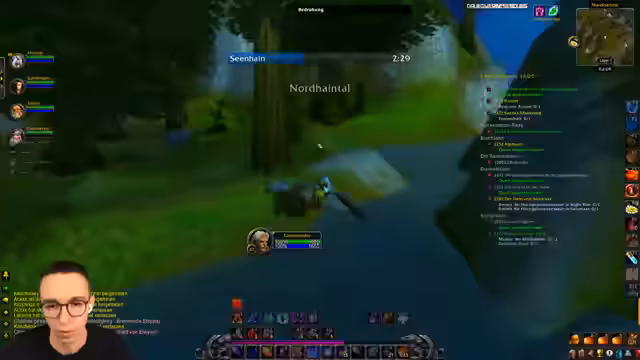 02:15:15Nachdem er feststellt, dass in der deutschen Gilde niemand auf seine Nachrichten reagiert, probiert er es erneut mit einer direkten Suche nach Mitspielern für die Instanz Burg Schattenfang. Hierbei diskutiert er über die Sympathie einer Nachricht und überlegt, ob er selbst einen Beitrag zur Gilde leisten kann. Gleichzeitig reflektiert er seine eigene Spielweise, da er bisher hauptsächlich Nahkämpfercharaktere gelevelt hat und nun als Magier mit Distanzangriffen experimentiert.