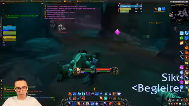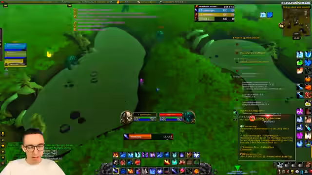 01:46:42Der Streamer versucht erfolglos, eine schwierige Quest namens 'Köder für Gorilli, Schwarmkönigin' mit seiner Gruppe zu teilen, da dies angeblich einen speziellen Gegenstand erfordert. Er klagt über ein volles Inventar, das ihn bei der Quest-Navigation bremst. Ein wichtiges Ereignis ist ein unerwarteter Raideingriff von 67 Spielern namens 'Mitaschi', der den Streamer und den Chat gleichermaßen überrascht. Dies führt zu einer Reflexion über den Spaß und die Sucht, die WoW auslöst, und wie selbst erfahrene Spieler wie Mitaschi sterben können.