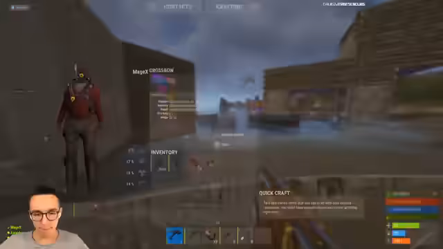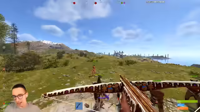 08:05:07Die Gruppe lootet erfolgreich eine Crate und erhält wertvolle Gegenstände wie zwei Advanced Fragmente, eine HQ Double Door und eine AK. Es wird entschieden, eine Weapon-Workbench in der Mitte der Village aufzustellen, damit alle Spieler Zugang zu besseren Waffen haben. Der Streamer betont den Gemeinschaftsgedanken und teilt seine Ausrüstung, wie einen Bogen, mit anderen Spielern, um die Kampfkraft der gesamten Gruppe zu erhöhen.