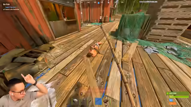 08:31:10Die Aufmerksamkeit verlagert sich zu einem Air-Drop im Wasser, den die Gruppe zu campen versucht. Zwei Gegner sind am Drop-Point und die Gruppe überlegt, ob und wie man sie angreifen kann. Die Aktion wird jedoch nicht ausgeführt. Stattdessen kehrt man zum Hauptziel, der Fishing Village, zurück, um eine Mission zu erledigen. Das Fischen scheitert jedoch, da die Fischtraps leer sind, was Frustration hervorruft.