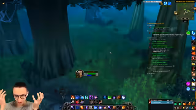 00:14:18Nach dem technischen Problem und dem Abschied von Chat wechselt der Streamer zum Spielen von World of Warcraft Classic. Er bewegt sich durch die Dämmerwald-Region, kämpft gegen Skelette und Magier und sammelt Gegenstände wie den Skelettfinger und Spinnengift für Quests. Der Fokus liegt auf dem Leveln, wobei der Streamer bemängelt, dass er auf niedriger gestufte Gegner angewiesen ist, die keine Erfahrungspunkte bringen, und daher langsam vorankommt. Die Grafik des Spiels wird als beeindruckend für ein 20 Jahre altes Spiel bezeichnet.