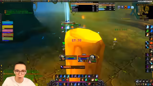 06:04:01Im Rahmen der Analyse der Todesfälle und gefährlichen Situationen wird die Mechanik der Bedrohungskontrolle (Aggro) genauer beleuchtet. Ein Missklick führt dazu, dass Slayka die meiste Bedrohung bekommt und sofort angegriffen wird, was fast in ihrem Tod endet. Auch eine andere Situation zeigt, wie ein Teammitglied durch die 'Box 7' die Bedrohung auf sich zieht und so den Rest des Teams schützt. Der Streamer erkennt, dass er als Magier zu wenig Schaden macht, um sich im mittleren Bereich der Bedrohung zu halten, und konzentriert sich stattdessen auf Überlebensfähigkeiten wie Eisblock.