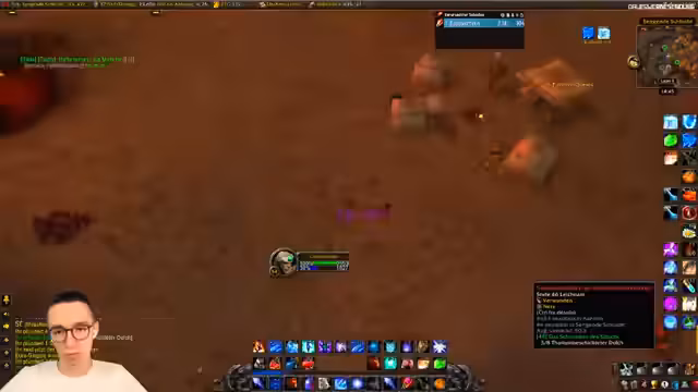 11:42:53Der Streamer erzählt von einem fatalen Fehler, der zu seinem Tod führte. Beim Versuch, eine Steintafel im Wasser zu looten, ist er ertrunken. Er erklärt, dass er vergessen hatte, den Elune-Bot zu einem Makro zu binden, um kurzzeitig unter Wasser atmen zu können. Dieser Flüchtigkeitsfehler, der während eines Autopilot-Zustands geschah, zeigt die Gefahren des Hardcore-Modus, bei dem ein einziger Fehler tödlich enden kann.