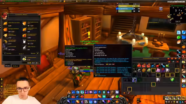 11:10:18Der Streamer thematisiert ein Problem mit der Gilde, es herrsche ein Mangel an Leder und Verzauberungen. Er vermutet, dass diese Berufe in der Gilde nicht sehr beliebt sind. Gleichzeitig berichtet er, dass viele Spieler in der Gilde den Ruf vernachlässigen und stattdessen lieber Schlachtzüge machen. Das führt dazu, dass es schwierig ist, an wichtige Rohstoffe für das Spiel zu kommen, was den Fortschritt behindert.