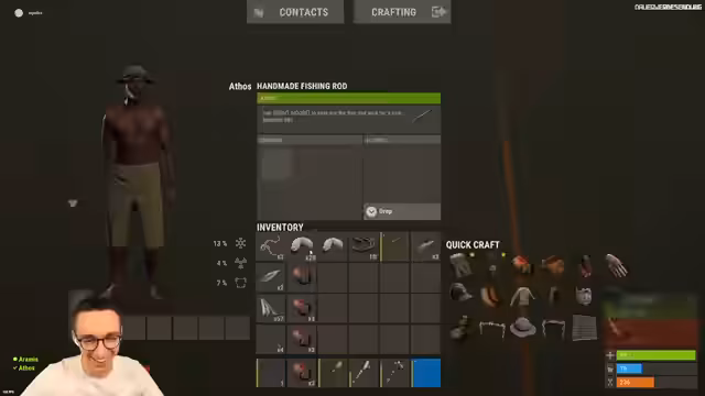 02:43:37Der Streamer plant, in der Nacht zu angeln, da er in der Basis genügend Ressourcen wie Köder und Fische hat. Er überlegt, dies nur durchzuführen, wenn sein Mitspieler damit einverstanden ist. Gemeinsam wollen sie die gefangenen Fische aufschneiden, um Blaukarten zu erhalten, die benötigt werden, um im Spiel Zilo zu besuchen und Aurichs herzustellen. Sie haben bereits 487 Scrap und sind kurz davor, die nächsten Stufen freizuschalten.