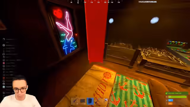01:55:46Während des Streams berichtet der Streamer von technischen Problemen, darunter niedrige Bildraten (FPS) und mögliche Server-Lags. Er erwähnt, dass das Spielbild gelblich wirkt und überlegt, ob er Rust neu starten sollte. Diese Probleme treten während aktiver Phasen auf und beeinträchtigen das Gameplay. Die Gruppe muss die Probleme kurzzeitig ignorieren, um ihre Ziele nicht zu verlieren, und der Streamer bittet um Geduld von den Zuschauern.