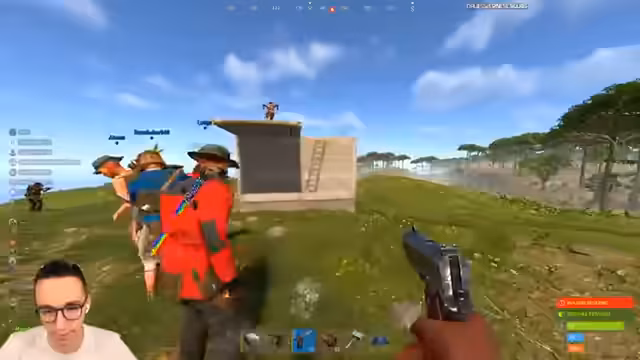 08:04:26Neben laufenden Bauprojekten diskutieren die Spieler Rust-Updates wie Tierschutzsysteme und Ballistik-Schilde, die langfristige Auswirkungen auf die Village haben könnten. Es gibt Planungen für Hausnummern zur besseren Organisation und Raid-Defense-Strategien. Ein Raid auf eine feindliche Base wird vorbereitet, wobei die Gruppe Satchels und Molotovs einsetzt. Am Ende wird der Village-Gedanke betont: Jeder baut individuell, aber gemeinsame Aktionen stärken die Dorfidentität, während externe Angriffe abgewehrt werden.