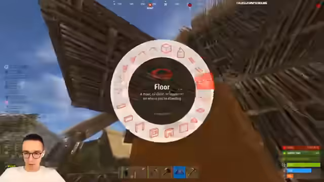 00:21:40Der Streamer plant eine asiatisch inspirierte Base mit Metal-Upgrade und einem dekorativen Balkon. Er bemerkt jedoch, dass er building-blocked ist und seine Base nicht erweitern kann, obwohl er den TC (Tool Cupboard) kontrolliert. Es stellt sich heraus, dass ein anderer Spieler (Bambeka) die Erlaubnis nicht erteilt hat. Nach einer Anfrage kann er autorisiert werden. Die Base soll ein HQ-Building-Skin erhalten und wird als sicher eingeschätzt, da niemand in der Village angreifen wird.