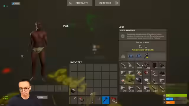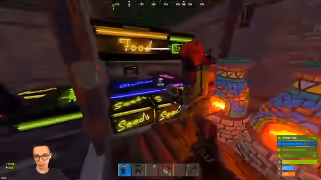 03:00:30Der Streamer erkundet seine Basis und baut eine Cave innerhalb der bestehenden Cave, wobei er auf einen anderen Spieler stößt. Nach einer kurzen Interaktion beginnt er, Ressourcen zu sammeln, insbesondere große Boxen und Metallerze. Er stellt fest, dass er zu fett ist, um bestimmte Gegenstände zu platzieren, und konzentriert sich darauf, Werkzeuge und Ressourcen wie Metal und Sulfur zu farmen. Er entdeckt auch Tunnel-Engine-Stationen und Harvesting-Tees.