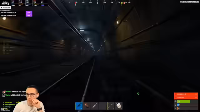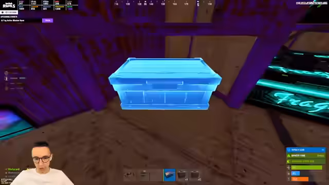 00:09:59Zu Beginn des Streams beschäftigt sich der Streamer mit Problemen in der Basis, insbesondere mit vollen Kisten und unbenannten Betten. Es wird ein anstehender Ressourcenrun angekündigt, bei dem Swing Kids, HQM, Sprins und Low Grid gesammelt werden sollen. Ein großes Problem ist der Diebstahl durch das Gegnerteam Mendo, das in der Base eingedrungen ist und die Betten manipuliert hat, was den Streamer frustriert und motiviert gleichzeitig.