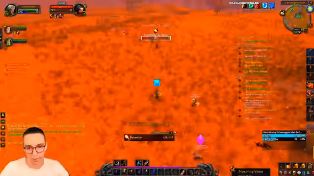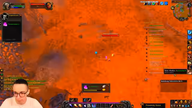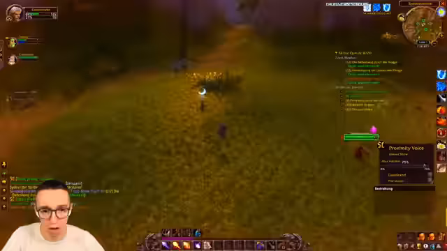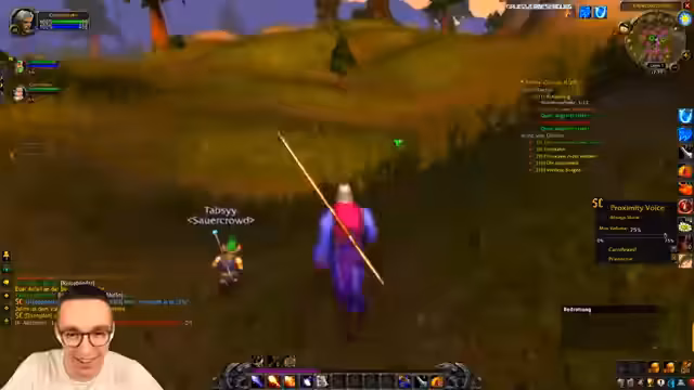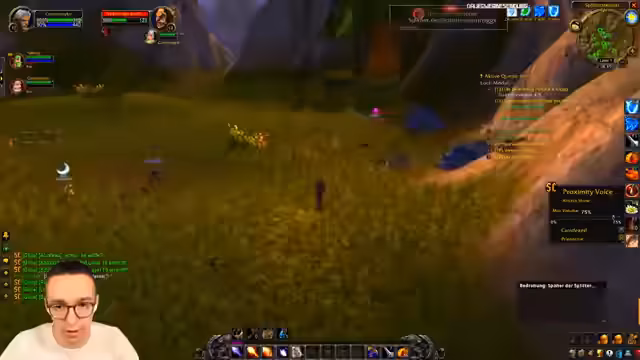 11:08:54Die Gruppe erreicht ein dicht bebietes Gebiet in Westfall, das als sehr riskant beschrieben wird. Das ständige Spawnen von Spielern und Mobs erfordert höchste Konzentration und das strikte Zusammenbleiben des Teams. Der Streamer äußert sich unwohl und meint, man müsse hier Respekt haben, da ein Fehler schnell zum Tod führen kann, besonders wenn man niedrigeres levelt.