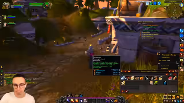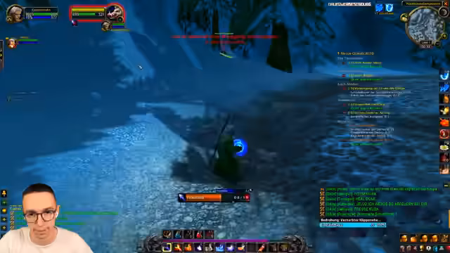 00:32:36Um 12 Uhr startet das offiziell. Es wird ein eigener Song von Jan Hegenberg präsentiert, gefolgt von einer motivierenden Ansprache der Gildenleitung. Die Aufforderung lautet, sich gegenseitig zu unterstützen, anstatt andere zu stören. Anschließend wird ein Countdown gestartet und alle Spieler loggen sich gleichzeitig ein, um die Welt von Azeroth zu betreten.