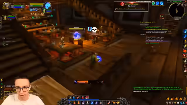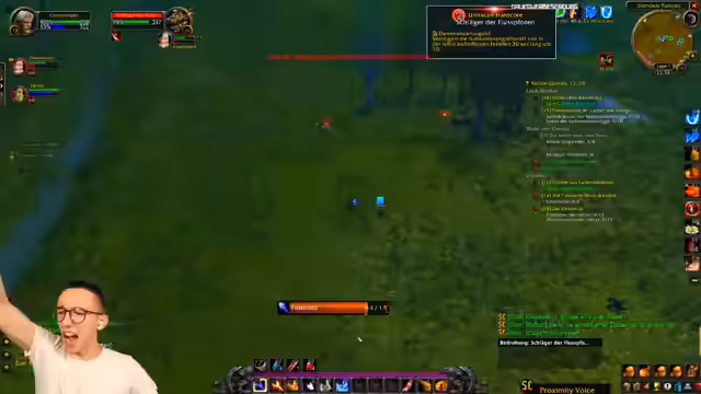 12:27:15Bei der Annahme einer Magier-Quest, die als besonders gefährlich gilt, greift er einen Mitspieler auf, der ihm hilft. Der Streamer castet einen Frostschild auf den anderen Spieler, während dieser einen Gegner bekämpft. Es kommt zu Missverständnissen und dem direkten Befehl, sich nicht einzumischen, um die Quest ohne Unannehmlichkeiten abzuschließen.