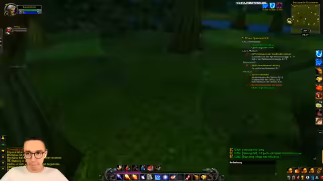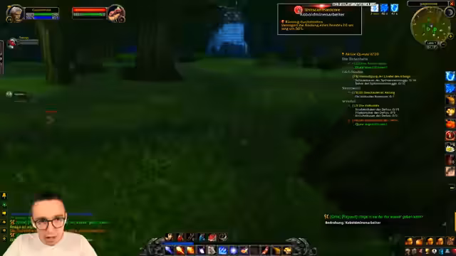 04:44:05Zu Beginn des Streams beschwert sich der Streamer über die Schwierigkeiten für Neueinsteiger in World of Warcraft. Das gesamte Gebiet ist überlaufen, was das Questen extrem unmotivierend macht. Er stellt fest, dass das Leveln im Sumpf, einem Startgebiet, keinen Spaß bereitet, da es zu voll ist und man ständig auf andere Spieler warten muss. Auch technische Probleme mit komischen Add-On-Sounds, vermutlich dem Weapon Swing Timer, werden erwähnt, die das Erlebnis beeinträchtigen.
