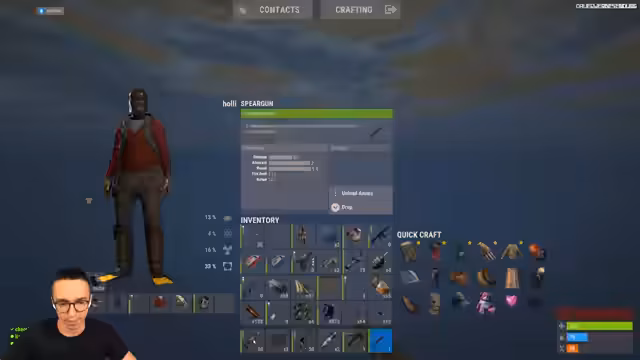 04:58:28Die Herstellung einer Speargun wird zur Priorität, um das Labor effektiv zu farmen. Dafür sind Tauchgänge nötig, um Propangas-Tanks zu besorgen. CaptainMyko wägt ab, ob er mit dem Bogen ins Lab gehen soll oder erst die Speargun craften muss. Gleichzeitig wird die Basis erweitert, doch der Materialmangel (besonders Stoff für Türen) bleibt ein Problem. Nachtaktivitäten werden aufgrund der Sichtbarkeit kritisch hinterfragt.