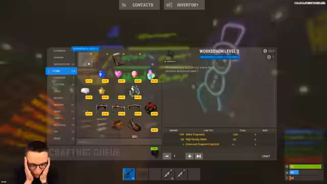 05:42:41Aufgrund der fragmentlosen Loot-Runs wurde die Taktik geändert: Statt weiter das Lab zu farmen, konzentrierte man sich auf das Absuchen von Unterwasserbereichen und die Konfrontation mit Tauchern. Mit Revolver und Pumpgun ausgerüstet, wurden gezielt große Kisten angepeilt, um endlich ein Fragment zu finden. Zwischendurch wurde der Bau einer Workbench 2 vorangetrieben, um den Fortschritt zu beschleunigen. Die Suche gestaltete sich jedoch zäh, was zu erneuten Diskussionen über effizientere Monument-Runs führte.