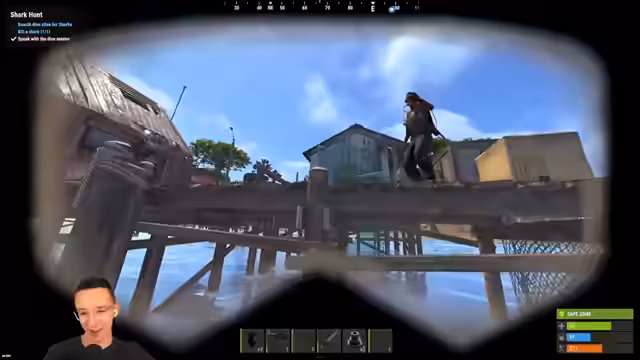 01:43:40Der Streamer bereitet sich intensiv auf die Deep-Sea-Phase vor. Er sammelt alle notwendigen Gegenstände wie eine Speergewehrt, Tauchausrüstung und Wasserfässer. Er plant, direkt ins Wasser zu springen, um in Schiffswracks nach Loot zu tauchen. Beim Erkunden stellt er jedoch fest, dass die neue Tauchmechanik nicht wie erwartet funktioniert: Die Flipper machen einen langsamer statt schneller, was die Unterwasser-Exploration deutlich erschwert.