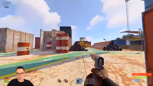 10:02:45Die feindliche Gruppe kommt tatsächlich zur Basis, was zu einem heftigen Feuergefecht führt. Die Kommunikation der Gegner ist mehrsprachig und spannungsgeladen. Der Streamer und seine Teamverteidigen die Basis, feuern auf die Angreifer und richten dabei auch gegnerische Objekte wie ein Boot und Wissenschaftler-Stationen.