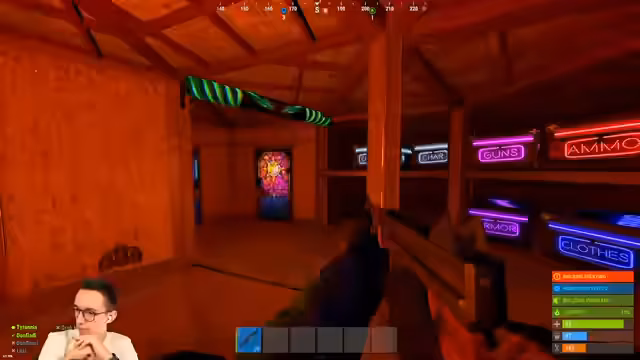 05:13:22Der Streamer wird von einem Turret getroffen und fragt sich, wie das möglich ist, da es eine unsichtbare Nebelwand geben sollte. Er erhält drei Autoturret-Hits auf 80 Meter. Er überprüft die Friendslist von Watt, findet aber keine Verbindung zu den Angreifern. Er fragt sich, wo das ganze Akro ist, da der Rotzak von einem der Gegner halb leer war. Der Streamer ist low und fleht darum, nach Hause zu fliegen. Er hat kein Boom dabei und wollte das Turret abbauen. Der Chat diskutiert über die Reichweite von Autotruids und ist verwirrt, wie der Gegner so präzise auf große Distanz schießen konnte. Der Buddy des Streamers ist verschwunden und muss woanders sein. Niemand von den Gegnern hat ein Desert Raider Set dabei. Der Streamer vermutet, dass sein Buddy weggespült wurde oder von einem anderen Spieler gelootet wurde. Er wird sauer und dachte, die Base sei im Anflug. Er fragt, ob jemand ein Desert Raider-Set hat, und erinnert sich, dass er ein Locker-Set genommen hat. Er will Boom mitnehmen und muss erst Explosives craften.