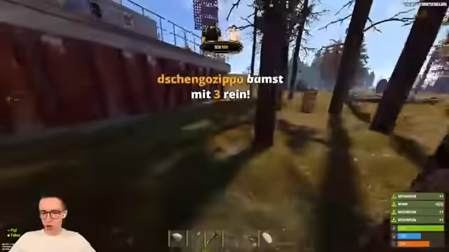 06:04:07Es kommt zu einem Kampf, bei dem die Spieler von mehreren Gegnern angegriffen werden. Einer der Spieler wird getötet, aber die anderen können die Angreifer ausschalten. Es wird festgestellt, dass einer der Angreifer eine besonders effektive P2-Waffe hatte. Die Spieler looten die Leichen der Angreifer und sichern ihre Basis. Es wird überlegt, ob noch weitere Angreifer in der Nähe sind. Die Spieler planen, die Waffen der Angreifer zu nutzen und ihre Basis weiter zu verteidigen. Die Spieler sammeln Holz und andere Ressourcen, um ihre Basis zu verstärken. Es wird festgestellt, dass ein Spieler Holz von einer Leiche gelootet hat. Die Spieler loben die Effektivität der P2-Waffe, die sie von einem der Angreifer erbeutet haben. Es wird überlegt, ob man am Hoop angreifen soll, aber entschieden, stattdessen die Basis zu sichern. Die Spieler looten die Gegend und bereiten sich auf weitere Angriffe vor.