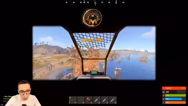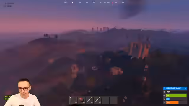 08:00:23Nach einem erfolgreichen loot run, bei dem der Streamer Ressourcen wie Metal Fragments und Pipes erbeutet hat, fliegt er mit einem Minicopter zu einer anderen Basis. Er plant, die Basis nur zu beobachten und zu analysieren, bevor er einen Angriff in Betracht zieht. Es werden Pläne für ein Gebäude, das man aufwerten könnte, besprochen. Der Streamer ist vorsichtig, da die Gegend sehr aktiv ist, und will nicht riskieren, entdeckt zu werden.