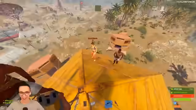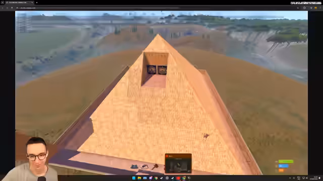 08:34:39Bei der Überprüfung der Umgebung stößt man auf eine große Basis in Pyramidenform. Sie ist aus Holz aufgebaut und wirkt ungeschützt. Der Streamer äußert seine Überraschung über das Design und vermutet einen Baustil, der an eine Pyramide erinnern soll. Die Begegnung mit dem Spieler „Xennox“ wird erwähnt, dessen Loot bei einem „Rubik's Cube“ Drop-Zufall als unglücklich beschrieben wird. Man plant, sich die Basis genauer anzusehen, und beschließt, näher heranzufliegen, um sie zu bewerten.