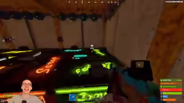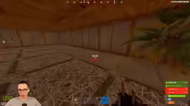 07:55:52Es wird besprochen, wie der Rocket-Abschuss beim Landen erfolgen soll, um niemanden zu gefährden. Ein kommender Patch wird thematisiert. Es wird die Freude über die Pyramide ausgedrückt. Es wird überlegt, wie der Mini oben gut platziert werden kann. Eine rote Base in der Ferne wird als interessant befunden. Es wird besprochen, wo genau die Rocket durch die Decke geschossen werden soll. Es wird festgestellt, dass Foundation fehlt und überlegt, wie man vorgehen soll. Es wird besprochen, wie man mit Explo-Munition gegen die Decke schießen soll, um die Gegner abzuwehren. Ein Spieler wird als "so geil" gelobt. Es wird festgestellt, dass die TC bereits weg ist oder sich jemand eingestellt hat. Es wird überlegt, ob man das beste Zeug mitnehmen soll. Die Frage, wie man weitermachen soll, wird aufgeworfen, da man nichts bauen kann. Es wird überlegt, ob einer nach Hause gehen soll, während der andere versucht zu halten. Es werden Waffen ausgetauscht und überlegt, ob der Mini kaputt ist. Es wird die Möglichkeit diskutiert, den Gegner mit einer Rocket zu töten, wenn sein Kopf durch den Geldstock guckt.