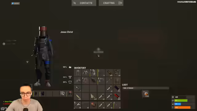 00:32:01Nachdem das Team Metal und Sulfur gefarmt hat, wagt es sich an eine Raid auf eine Berry Base, die als profitabel gilt. Beim Plündern entdecken sie nicht nur die erwarteten Ressourcen, sondern stößt auch auf einen nackten Spieler mit einer halbautomatischen Waffe und einem großen Rucksack. Dieser kurze, aber hektische Auseinandersetzung führt zur Beute des Rucksacks und der Waffe.