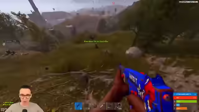 07:18:11Während der Erkundungstour wird ein schlafender Spieler entdeckt, dessen Diving-Ausrüstung bereits despawned wurde. Es wird überlegt, ob sich ein Online-Raid bei den Vasen lohnen würde. Die blaue Base wird als optisch ansprechend bewertet und mit 10 von 10 Punkten bewertet. Es wird festgestellt, dass ein Spieler ausgebaut hat und eine Windmill besitzt. Ein Online-Raid wird als schwierig eingeschätzt. Die Red Cave wird als möglicher Online-Raid in Betracht gezogen. Eine P2 wird in der Nähe der Base gesichtet. Es wird beschlossen, die Base kurz anzufliegen. Es wird festgestellt, dass sich ein Juicer am Wasser befindet. Ein Minicopter wird gesichtet. Es wird überlegt, einen Topdown-Raid durchzuführen. Es wird festgestellt, dass sich ein Turret auf dem Dach befindet. Es wird beschlossen, die Base zu raiden. Es wird ein Plan entwickelt, bei dem der Streamer mit einem HP Launcher abgesetzt wird, um das Turret zu zerstören und den Minicopter zu stehlen.