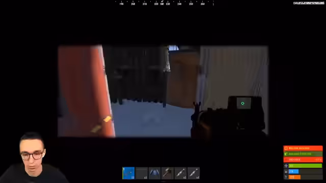 00:21:15Die Vorbereitung für den Angriff auf eine Zielbasis mit mehreren Turrets wird intensiviert. Diskussion über Taktiken wie das Baiten der Turrets mit Sleeping Bags und die Nutzung von Waffen wie der LMG. Probleme mit Ausrüstung (fehlender Schild, geringe Munition) und Optionen wie Granaten oder Leitern werden abgewogen. Der Fokus liegt darauf, die Turret-Munition zu erschöpfen, bevor ein direkter Angriff erfolgt, wobei die Herausforderung durch den winterlichen Schnee-Bug (Reflektionen im Monitor) betont wird.