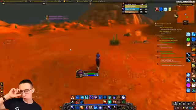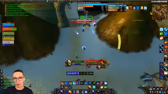06:10:09Nach der Raid-Organisation wechselt der Fokus zur Vorbereitung und Erkundung des neuen Quest-Gebietes 'Sengende Schlucht' für das levlen von Level 49 auf 50. Der Streamer erhält Tipps von anderen Spielern, dieses Gebiet als ideal für diesen Levelbereich zu bezeichnen. Es ist bekannt für mehrere Quests nacheinander und hohe Erfahrungsaufteilung, birgt aber die Herausforderung, dass die Gegner eng beieinander liegen und man leicht in Gefahr gerät. Er plant, dies gemeinsam mit seinem Partner Leon anzugehen.