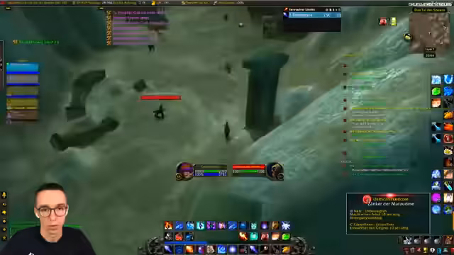 14:48:30Die Gruppe erkundet eine Höhle, die als 'glitschig' und 'wie ein Innenleben' beschrieben wird, und stellt sich Mobs. Sie führen die Quest 'Erlösung von Scrimshank' durch, eine 48er Quest, die im Hinterland stattfindet. Obwohl die Karte als rot markiert ist, was auf Gefahr hindeutet, schaffen sie es mit Vorsicht und Koordination. Sie teilen weitere Quests, wie die 'Erlösung von Scrimshank' und 'Das uralte Ei', und planen, sie gemeinsam zu erledigen. Der Streamer betont die Wichtigkeit, zusammenzubleiben, um nicht zu sterben.