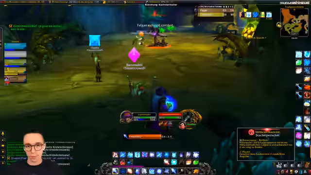 14:13:32Die Gruppe führt gemeinsam Quests durch, einschließlich der Chicken Quest und anderen Aufgaben. Dabei treten Herausforderungen auf, wie Probleme mit dem Tank, der niedriger levelt und Aggro nicht aufbauen kann, was zu unkontrollierten Pulls führt. Der Streamer reflektiert über seine Erfahrungen in Instanzen, wo er sich unsicher fühlt, obwohl das Team über dem empfohlenen Level ist. Es wird über die Dynamik mit verschiedenen Tanks wie Fallgan gesprochen, der gut aggro halten kann. Die Interaktion mit dem Chat wird genutzt, um Quests zu teilen und Zusammenarbeit zu koordinieren.