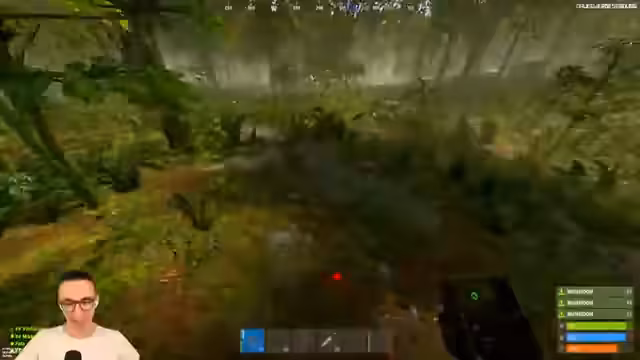 03:19:30Das Team ist im Dschungel unterwegs und sammelt Pilze sowie andere Ressourcen. Es werden verschiedene Basen und Areale erkundet. Es kommt zu Auseinandersetzungen mit Farmern und das Team erwägt, eine eingewallte Base auf einer Insel zu rauben. Der Streamer fragt nach der Menge an benötigten Pilzen oder Fleisch für die Herstellung von Hunting Pies und beschreibt den Dschungel als 'cremig' und 'geil', trotz der anspruchsvollen Bedingungen und der geringen Sichtbarkeit.