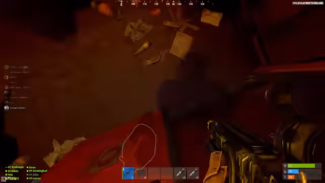 05:23:00Das Team beginnt mit dem geplanten Raid auf eine gelbe Base. Sie nutzen Raketenschleudern, um Wände und Türen zu zerstören und dringen in das Gebäude ein. Nachdem sie den Steinboden durchbrochen haben, stoßen sie auf zahlreiche Truhen mit wertvollen Ressourcen wie Sulfur und Schießpulver. Sie plündern die Basis systematisch, sammeln alles ein und entscheiden, die Beute sicher in ihre eigene Basis zu transportieren.