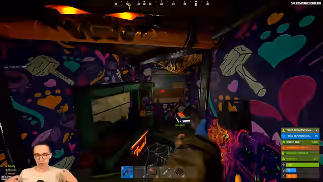 01:07:29Der Streamer ist erleichtert, dass der Gegner weg ist und hatte wieder eine Naked Instant Pump dabei. Er wundert sich, dass die Solo-Basis vollständig decayed ist. Er überlegt, den Condom-Gegner erneut anzugreifen, da er die MLS-Rockets nicht ungenutzt lassen möchte. Die Shops haben über Nacht gut funktioniert und viel Munition verkauft, darunter 2600 Schuss Pistolenmunition und 1000 Schuss 5.56er. P2s und Workbenchers sind ausverkauft. Tompsons sind ebenfalls komplett ausverkauft, was den Streamer überrascht. Er beschließt, die Shops nicht mehr aufzufüllen, da er jetzt Profit-Raids machen möchte. Er holt MLS und HVs für die Turrets auf dem Dach. Er benötigt Essen und Stoff für die Vorbereitung. Er erklärt, wie er die Einschläge der MLS auf der Karte verfolgt und feststellt, dass die ersten sechs Rockets perfekt auf einen Punkt geflogen sind, aber trotzdem alle Turrets noch leben, was er als dumm empfindet, da MLS eigentlich mehr Schaden an Turrets verursachen sollte. Er plant, mit 3 C4 und einer Rocket unter die Tür zu gehen, um die Basis von unten zu sprengen und Shotgun Traps zu vermeiden.
