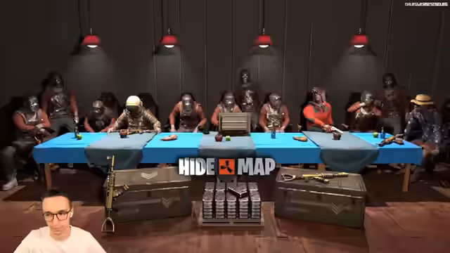 00:46:14Ein Team bereitet sich auf einen Raid vor und fragt nach Boom. Die Hälfte des Teams ist bereits auf dem Weg zum Ziel. Es wird besprochen, dass die Leute, die noch in der Basis sind, warten sollen, um gemeinsam mit dem Boom zum Ziel zu gelangen. Der Streamer fragt nach der Boomkiste und ob er im Team ist. Es wird festgestellt, dass die Basis bereits auf HQM aufgerüstet hat. Der Streamer fragt nach einer Waffe und einer Leiter. Es wird besprochen, dass man durch die Tür gehen und Garish reinlassen soll. Der Garagenstore wird geöffnet und der Streamer wird getroffen. Es wird festgestellt, dass die Gegner jetzt komplett auf HQM upgraden. Der Streamer fragt, wer einleiten kann. Es wird besprochen, welche Basis zuerst angegriffen werden soll und dass die Dschungelbasis Peaks nach außen hat, während die orangefarbene Basis dies nicht hat. Es wird beschlossen, durch Foundation zu gehen und die Dschungelbasis zuerst anzugreifen.