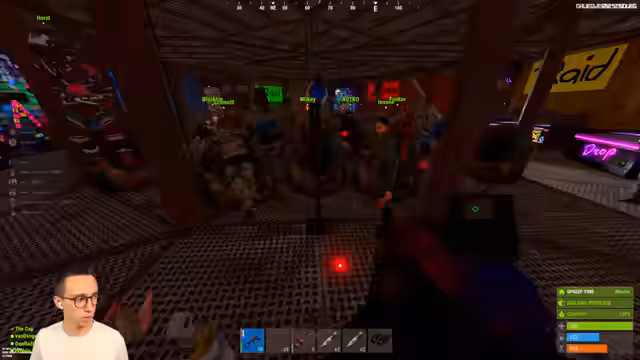 08:45:03Es wird nach einem Jackhammer gefragt, um einen Roof zu bearbeiten. Die Foundy soll hochgebaut werden. Die Gruppe geht davon aus, dass ein Teil des Loots gemeinsam zurückgebracht wird und beschließt, abzuziehen. Ein TC wird platziert, um Disconnected zu sichern. Die Gruppe plant, einen TC auf dem Roof zu platzieren und benötigt dafür Metal-Frags und Holz. Ein Turret an der Raid Base ist aus und es wird ein TC platziert. Es wird nach Metalfrax gefragt und überlegt, eine 50er zu ziehen. Die Arme Toss hier oben wird nicht geöffnet. Die Turtles am Railtower sollen ausgeschaltet werden. Es wird festgestellt, dass die Audi-Qualität gut ist und die Turrets werden zerstört. Die Gruppe stellt fest, dass die Gegner Pipes hatten und plant, die Sam-Site für X-Rayter zu nutzen. Die Gruppe bespricht, wie sie sich am besten für den Heimweg ausrüsten und ob sie Minis holen sollen. Es wird überlegt, Sulfo rauszufliegen, aber zu Fuß als sicherer angesehen. Turrets sollen aufgehoben werden und der Shop wird nach brauchbaren Gegenständen durchsucht.