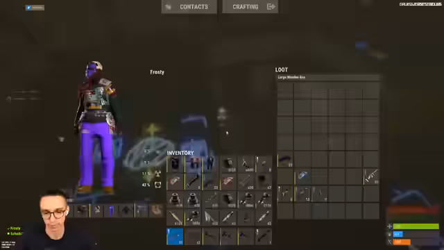 00:17:41Der geplante Überfall auf Michael in der PC-Station gelingt erfolgreich. Nachdem er mit einer Bolt-Armierung getötet wurde, können sein gesamtes Inventar, darunter ein Hazy-Rucksack und eine Bolt-Ausrüstung, geplündert werden. Der Gegner hatte anscheinend auf einen Wipe reagiert und die Base vorübergehend verlassen. Die Beute ist jedoch beachtlich und motiviert das Team für die nächsten Aktionen.