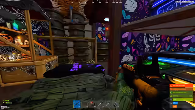 01:34:15Die Spieler beobachten einen anderen Shop auf dem Server, der extrem günstig handelt und Advanced Fragmente für nur 1000 Sulfur anbietet. Es wird vermutet, dass der Betreiber viel Oryx gejagt hat. Um zu kontern, wird eine strategische Planung angestellt, um diesen Shop zu raiden und die Konkurrenz auszuschalten. Der Vorbereitung für den Raid, wie das Sammeln von Materialien wie Holz, Jackhammer und Nachtgerät, beginnt.