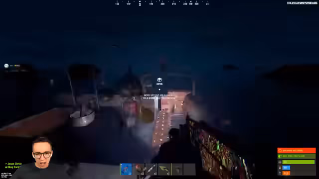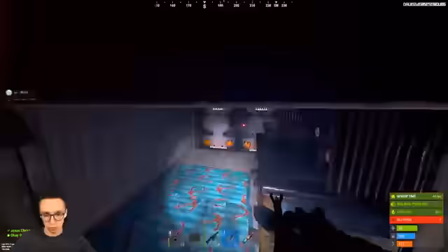 04:10:07Ein unerwarteter Spieler (Red) bricht in die Basis ein, was zu einem plötzlichen und hektischen Kampf Szenario führt. Der Streamer reagiert schnell, indem er sofort die Waffen zur Hand nimmt und seinen Partner über die Situation informiert. Es wird eine Diskussion darüber gestartet, wie am besten vorgegangen werden kann, um den Angreifer zu eliminieren oder zurückschlagen zu können.