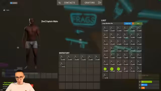 07:32:12Ein Nachbarspieler bietet an, ein Bild zu malen, das typisch deutsch darstellt. Nach kurzer Diskussion entscheidet man sich für ein Döner-Motiv als Symbol. Neben diesem kreativen Aspekt wird auch das technische Problem der vollen Dropkisten angesprochen, das das Sammeln von Ressourcen erschwert.