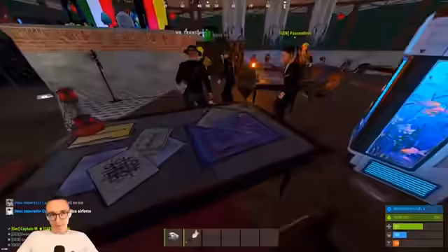 06:39:13Ein neues monumentales „Welt“-Map-Design wird gezeigt, das verschiedene Flaggen beherbergt und von den Spielern als beeindruckend und selbstgemalt angesehen wird. Es gibt Pläne, diese Karte zu nutzen, um Feinde zu locken und in gezielten Konfrontationen zu stellen. Die deutsche Flagge scheint nicht prominent vertreten zu sein, was zu Diskussionen über die visuelle Repräsentation und zukünftige Map-Updates führt. Man nutzt die Map auch zur Identitätsstiftung und ruft im Chat „Italy, it's us! The Germans!“.