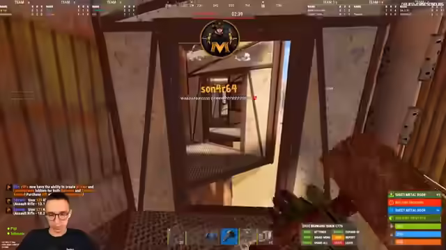 02:09:24Es wird über die Base-Lessons gesprochen und die Hoffnung geäußert, dass die eigene Base nicht geraidet wird. Der Streamer öffnet Weapon-Barrels und bereitet sich auf die Rust-Runde vor. Er erinnert sich an den Standort des Bettes eines Mitspielers und kündigt ein "gottloses Trio" an. Es wird über VIP-Status diskutiert und die Notwendigkeit für Teddy einen VIP-Status zu besorgen. Der Streamer startet eine Vorhersage im Chat und beginnt mit dem Basenbau. Er beeilt sich, um die Base rechtzeitig fertigzustellen und platziert Betten und Kisten. Es wird überlegt, Garagentore zur zusätzlichen Absicherung anzubringen. Der Streamer bemerkt, dass die Lobby nicht einfach sein wird und er noch nicht warmgeschossen ist. Er mag die Base und den Fake-Shooting-Floor. Während des Spiels kommt es zu einer überraschenden Begegnung, bei der der Streamer einen Gegner mit wenig Schrott überrascht. Er erschrickt sich kurz, freut sich aber über den erfolgreichen Kill. Es wird überlegt, ob es sich lohnt, zu sparen. Ein anderer Spieler nähert sich der Base und es kommt zu einer Auseinandersetzung, bei der ein Mitspieler getötet wird. Der Streamer wundert sich über die Identität des Gegners und dessen Vorgehensweise.