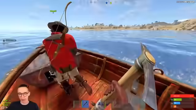 06:27:37Es beginnt eine Auseinandersetzung mit einem Kajakfahrer, der sich den Booten nähert. Der Fokus liegt darauf, ihn abzuwehren, um zu verhindern, dass er Ressourcen plündert. Es wird diskutiert, ob man auf den Kajakfahrer schießen soll, während dieser sich dem Boot nähert. Anschließend wird festgestellt, dass die Gegner Baumaterialien in ihrem Boot haben. Die Gruppe stellt fest, dass sie ihr Equipment behalten haben und plant, die Unterwasser-Kampffähigkeiten mit Combat Knives zu nutzen. Ein Spieler gibt an, einen Headshot erhalten zu haben, während er nicht in der Lage war, sich zu verteidigen. Werkzeuge werden untereinander ausgetauscht und die Umgebung wird nach weiterer Ausrüstung abgesucht. Es wird überlegt, wie man aus Holz und Metall Splitter gewinnen kann, um Speere herzustellen. Die Gruppe plant, kleine Rucksäcke zu craften und Baumaterialien zu organisieren. Es wird entschieden, mit Pumpguns zurückzukehren und Waffen zu verbessern. Ein Spieler fragt nach einem Flashlight für die Waffe. Es wird vereinbart, dass ein Spieler Rucksäcke und Speere craftet, während die anderen die Umgebung sichern. Die Gruppe diskutiert die Verteilung von Baumaterialien und Waffen, einschließlich Spearguns mit Munition. Es wird festgestellt, dass alle drei Spieler mit Spearguns und Munition ausgestattet sind.