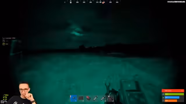 07:54:26Die Szene verlagert sich komplett auf ein Schiff, auf dem der Streamer und sein Team operieren. Es herrscht eine angespannte Atmosphäre, da der Streamer niemanden sieht und sich in Gefahr wähnt. Nach einer Verfolgungsjagd gelingt es dem Team, einen gegnerischen Spieler in einem roten Container auszuschalten und lootet anschließend dessen Ausrüstung.