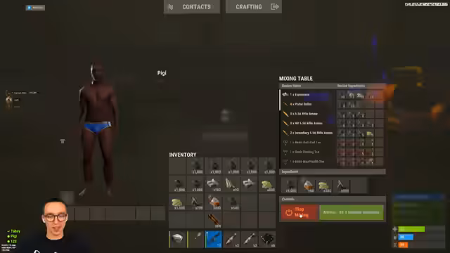 01:21:12Nach dem Anschließen an den Stream werden die Vorbereitungen für einen bevorstehenden Raid getroffen. Der Streamer checkt seine Ausrüstung und stellt sicher, dass alle notwendigen Materialien wie Metallfragmente, Leitern und Waffen wie Rocket Launchers und Thompsons vorhanden sind. Es finden kurze Absprachen über das Vorgehen statt, wobei der Fokus darauf liegt, strategisch in die gegnerische Base einzudringen und diese zu übernehmen.