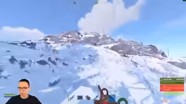 00:05:50Gemeinsam mit seinem Zuschauer "Eide" beginnt der Streamer mit einem Minicopter einen Raid auf eine große Base im Snow. Obwohl die Base leer zu sein scheint, stellt er unerwartete Schwierigkeiten fest. Er findet eine Ray Tower und muss seine Position ständig ändern. Der Versuch, in die Basis einzudringen, scheitert, als er feststellt, dass er nicht die nötigen Werkzeuge dabei hat, um durch die Wände zu brechen. Er beschließt, abzubrechen, um nicht zu riskieren, seinen Minicopter zu verlieren, und fokusiert sich stattdessen auf das Farmen von Nodes in der Umgebung.
